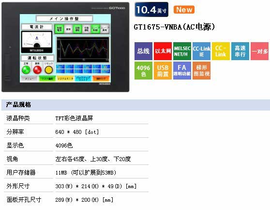 GT1675-VNBA可代替GT675-VNBA、A75GOT-TBA、A970GOT-TBA