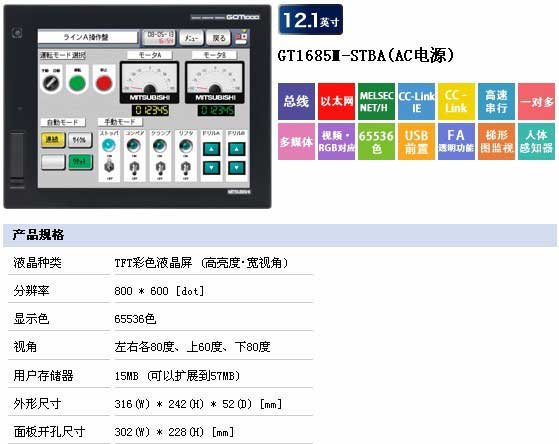 GT1685M-STBA可代替GT1585-XTBA、A985GOT-TBA